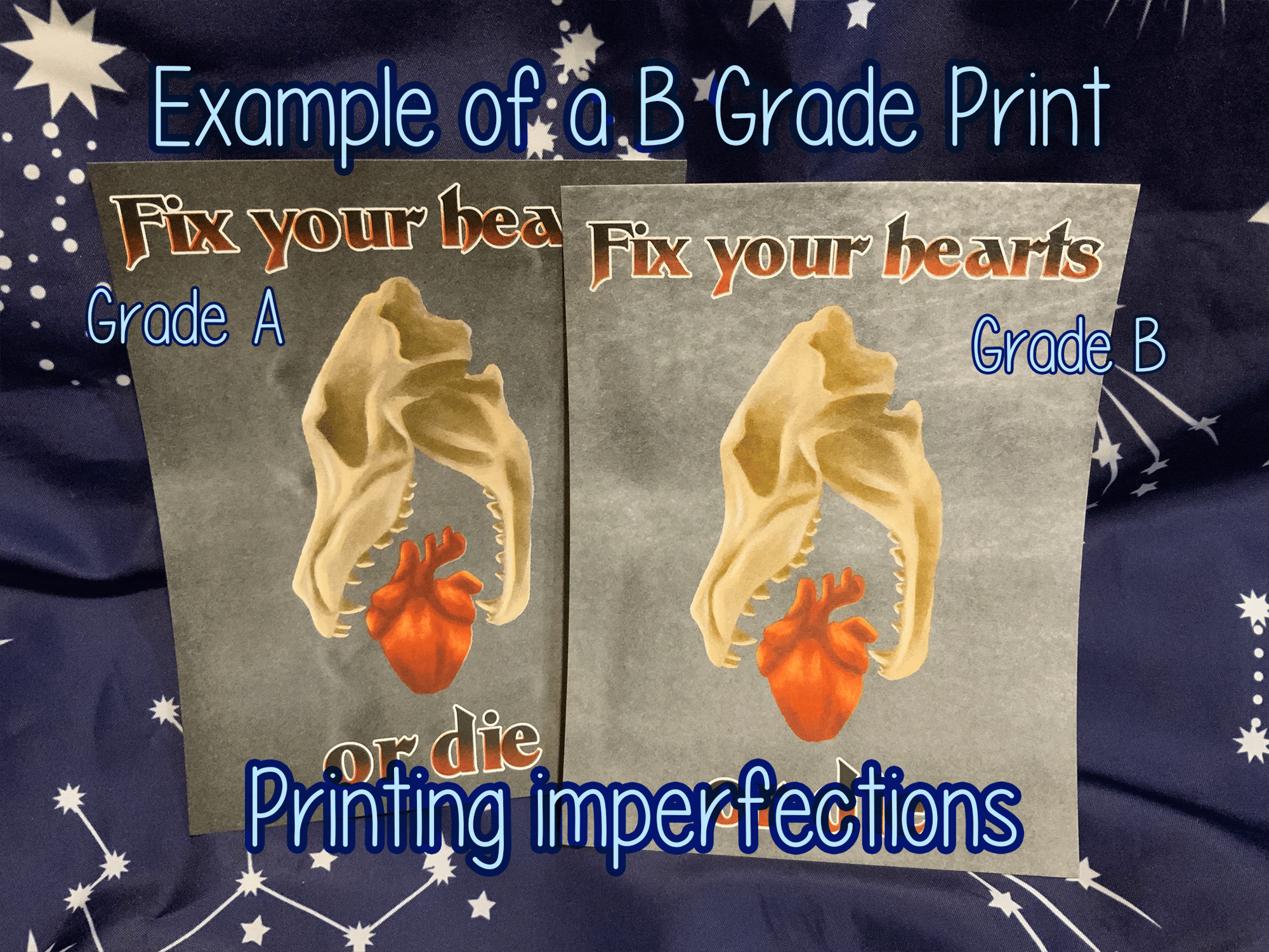 ⋆ B Grade prints have noticeable misprints and coloration errors. Otherwise they have a very similar print quality as A Grade prints.