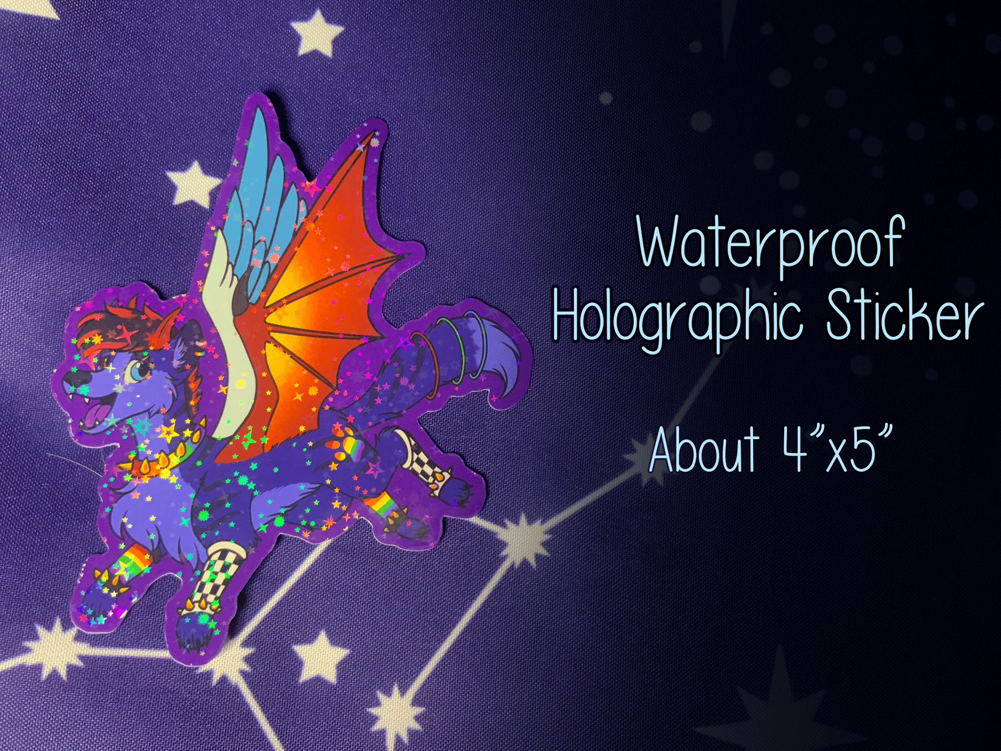 This sticker is printed on durable waterproof vinyl with a holographic finish.